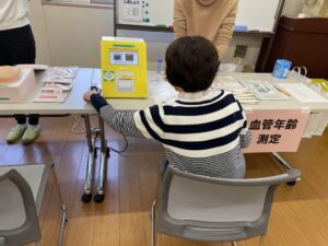 健康チェックの内容は、「血圧」「血管年齢」「体組成」「握力」「足指力」で、ご自分の現在の健康状態を知っていただく機会となったと思います。